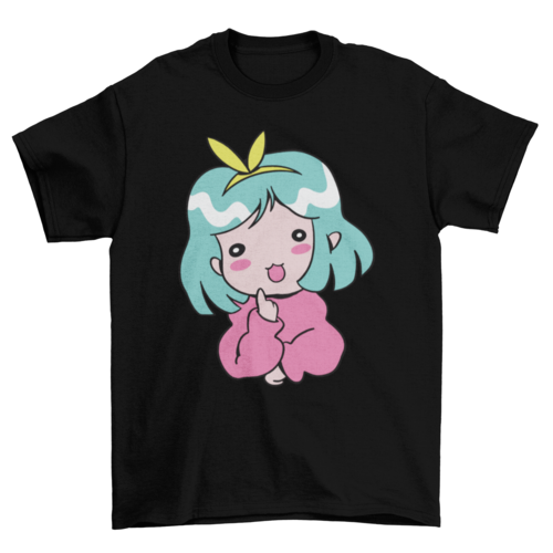 Cute t-shirt design featuring a blue-haired girl in anime style.